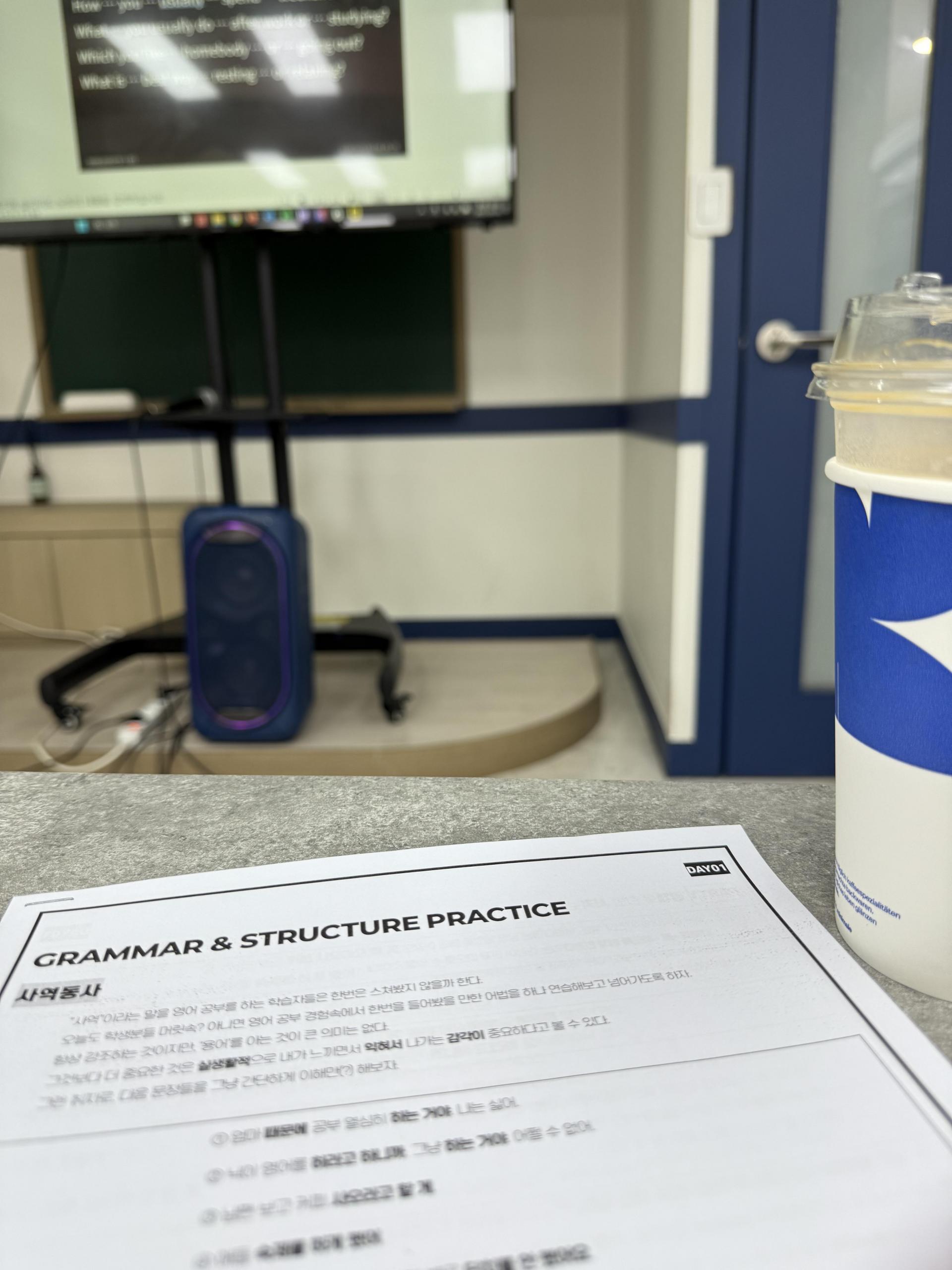 학생들 문장 하나하나 수정해주시는데 아 보법이 다르다는 걸 느꼈습니다. 질문에 대한 대답도 이해가 될때까지 여러번 다른 방식으로 설명해주시는 거 보면 정말 대단하신 것 같아요! 수업 받으면서 너무 행복했어요!