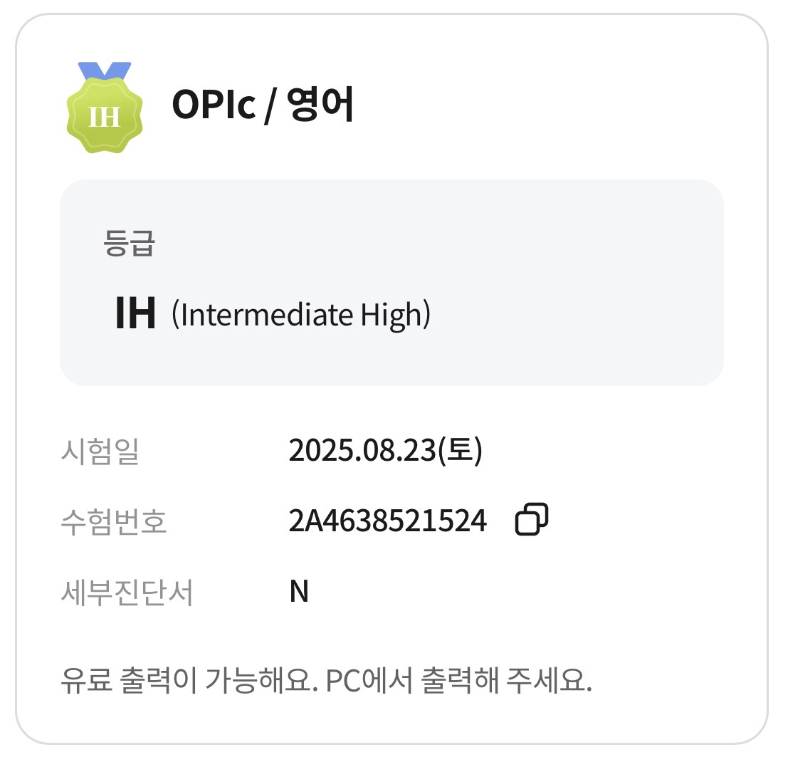 오픽시험공부는 사실 따로는 많이 못했는데 학원에서 배운게 말문이 트는게 많이 도움이 되었어요. 제가 말 자체를 잘 못하는 편인데 말하는 것도 많이 늘고 해서 괜찮은 점수를 받은거 같습니다.